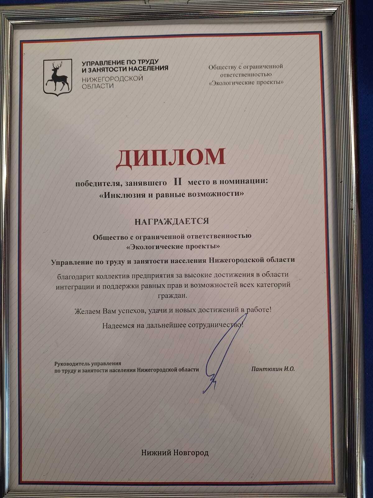 Также в рамках мероприятия прошло награждение лучших работодателей. ООО «Экологические проекты» стали «серебряным» призером в номинации «Инклюзия и равные возможности».